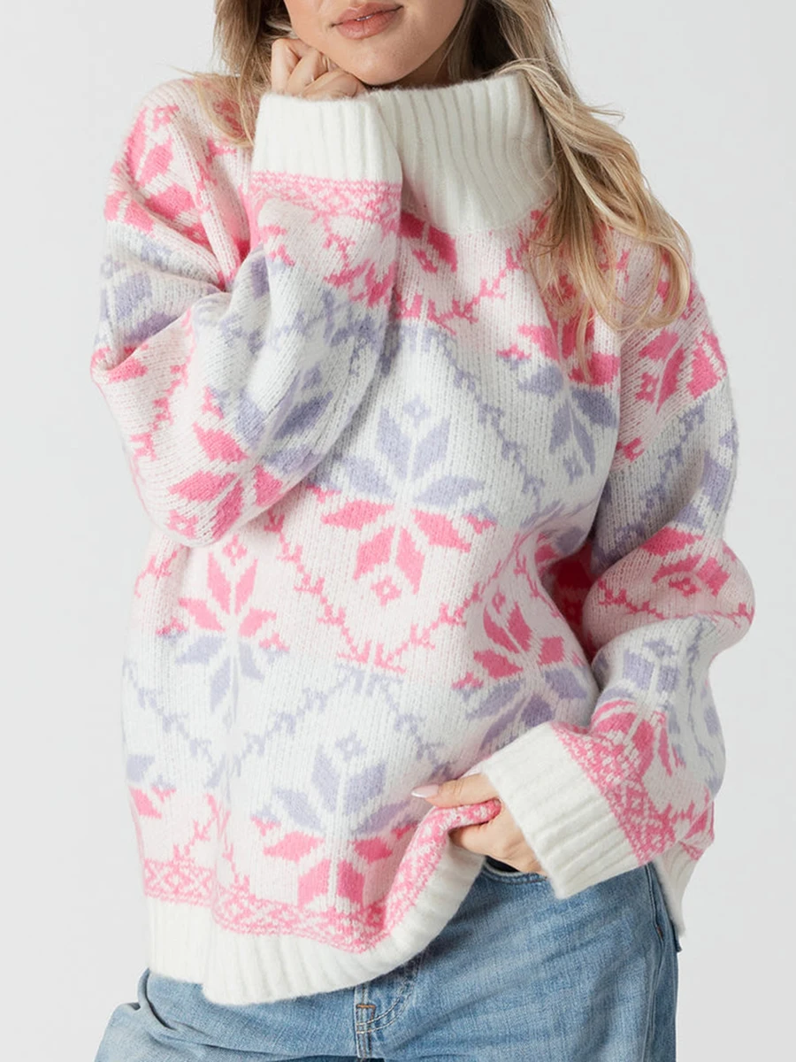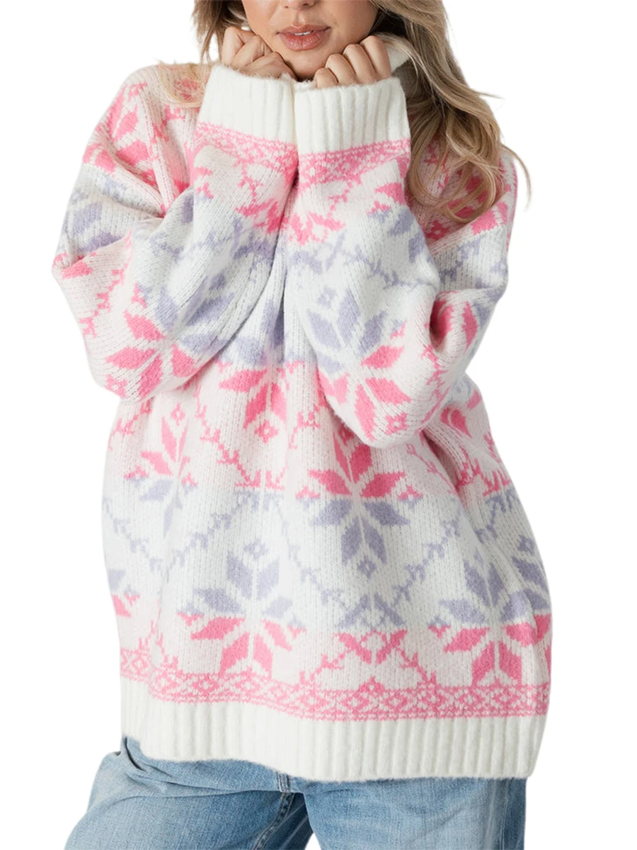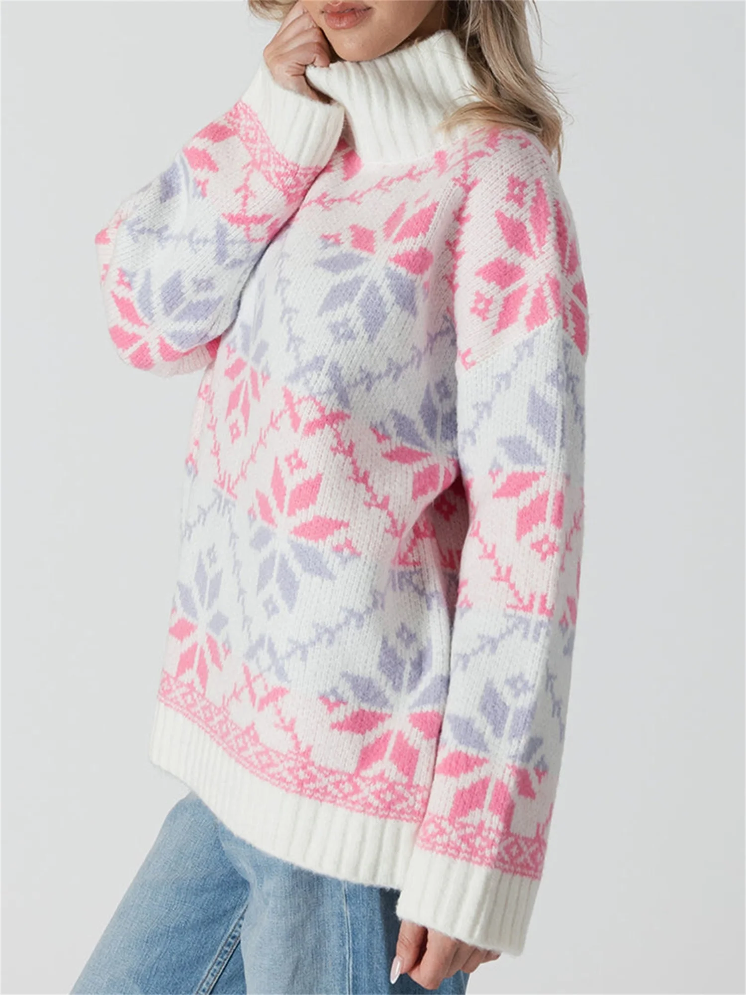 Women Cute Turtleneck Sweaters Casual Snowflake Print Comfy Warm Long Sleeve Pullover Basic Knitwear for Fall Streetwear