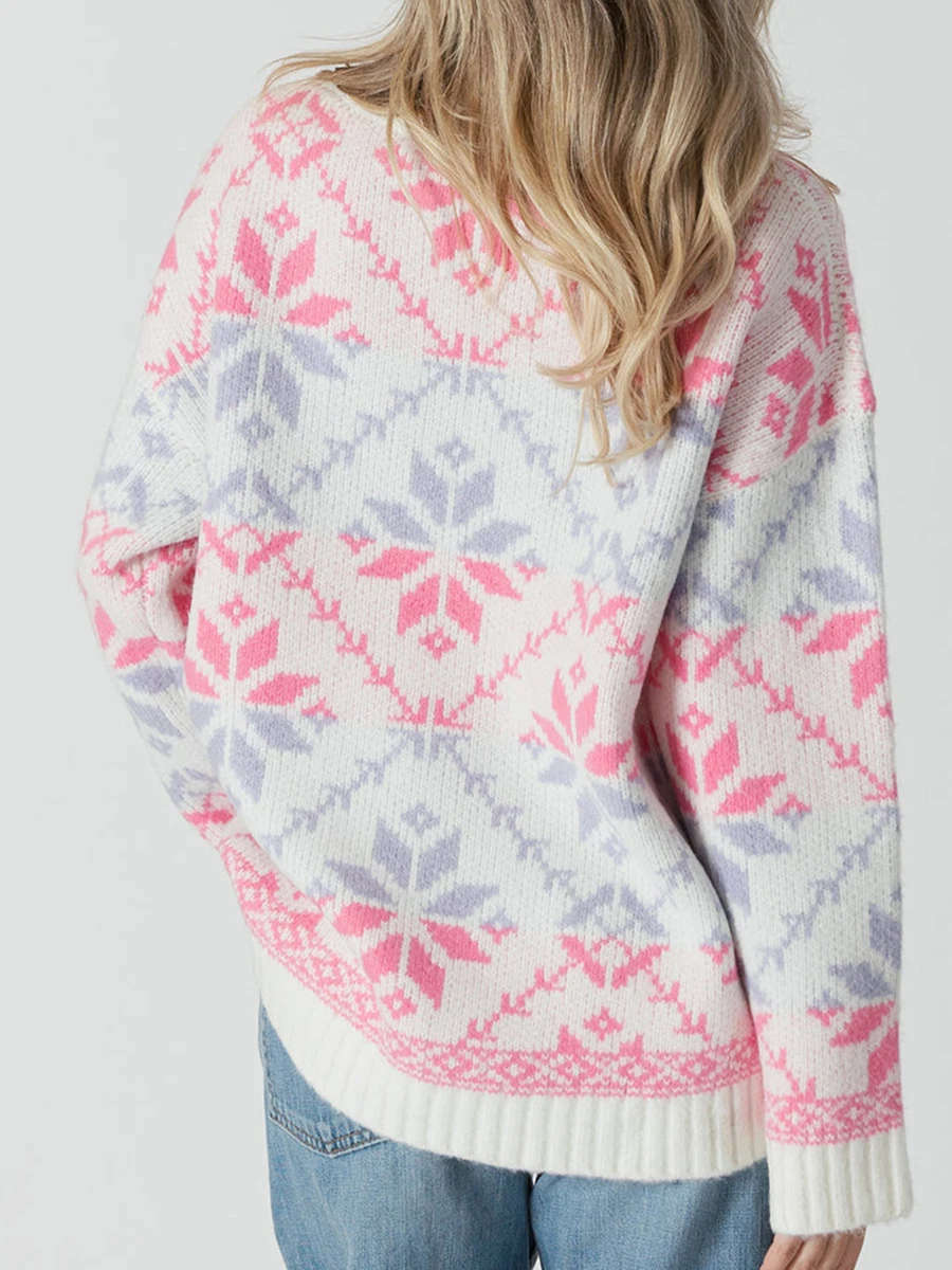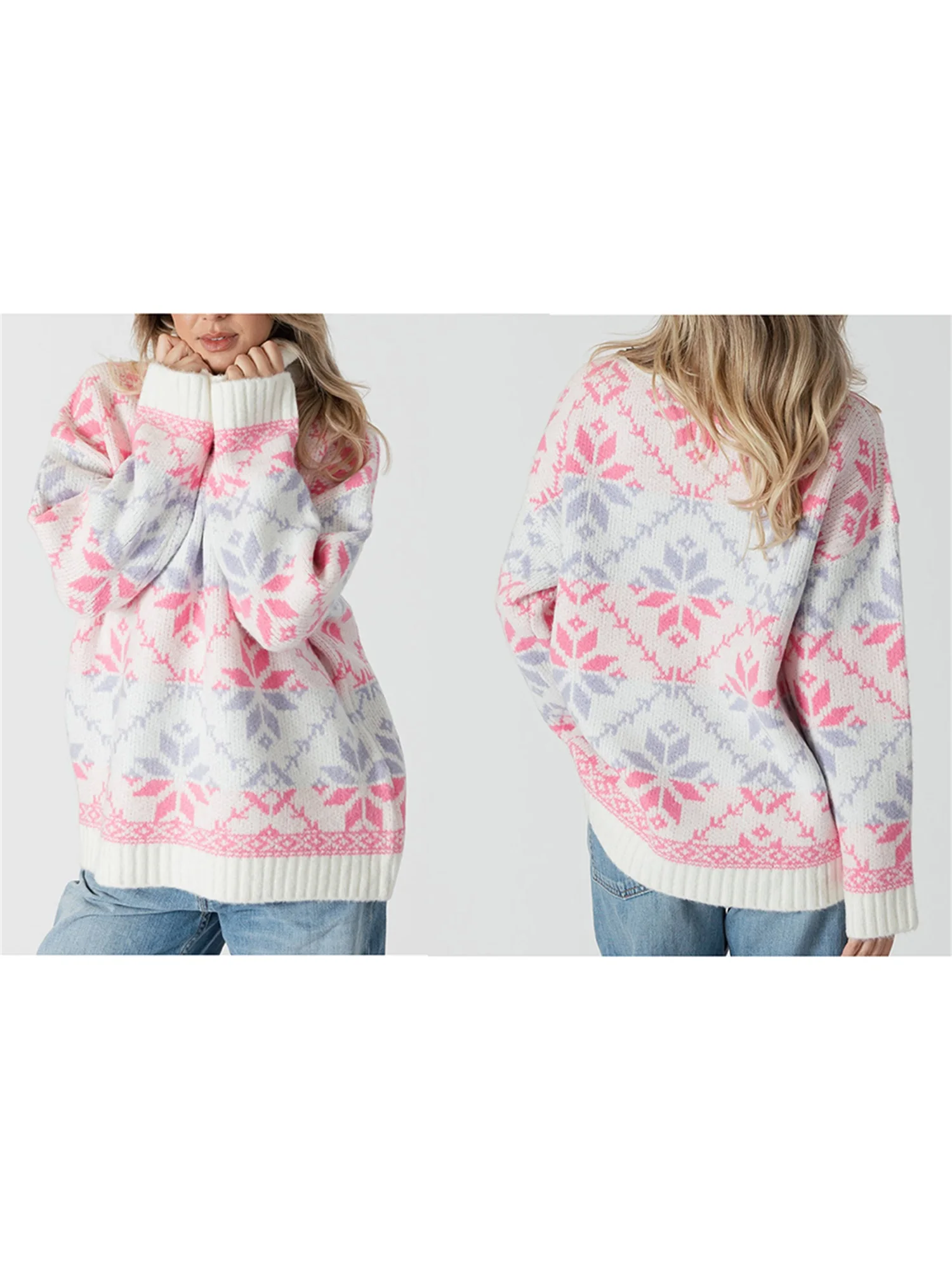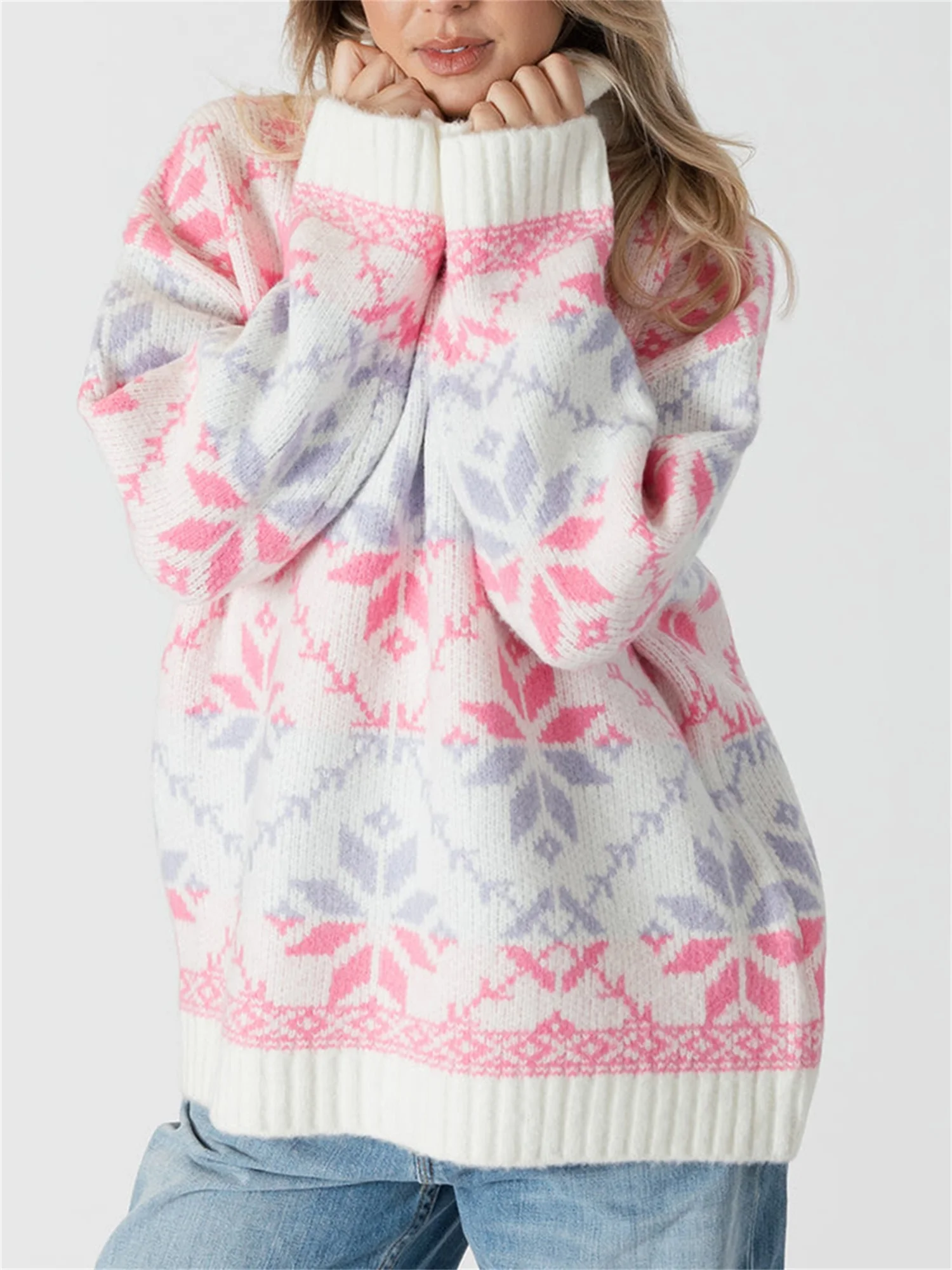 Women Cute Turtleneck Sweaters Casual Snowflake Print Comfy Warm Long Sleeve Pullover Basic Knitwear for Fall Streetwear